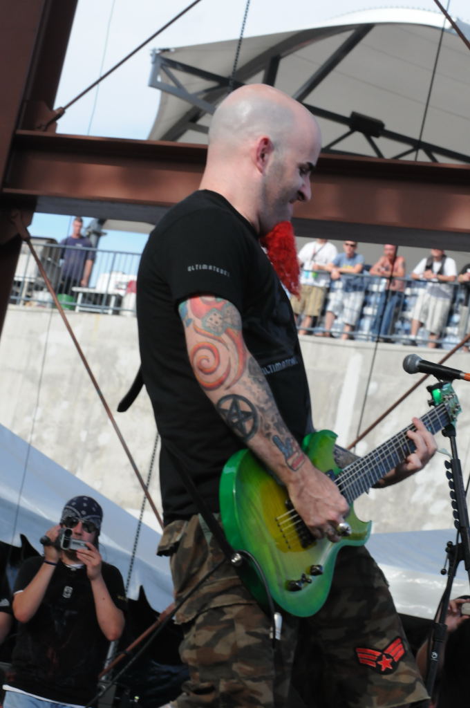 Description: Dimebag Tribute at Ozzfest 2008, Pizza Hut Park, Frisco, Texas - 08/09/08 - Scott Ian, Max Cavallera, King Diamond, Nick Bowcott and unknown drummer 2 perform the Anthrax song A New Level - photos by Jeff Barringer - Club Kingsnake Staff Photographer - Photos shot with Nikon D300 and Nikkor Lenses