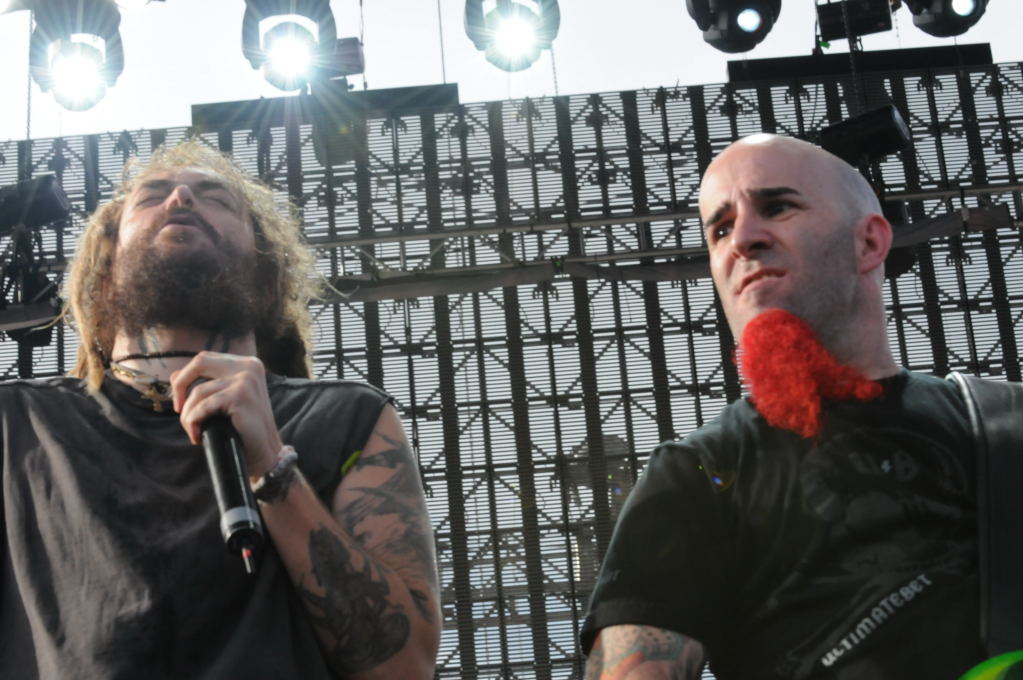 Description: Dimebag Tribute at Ozzfest 2008, Pizza Hut Park, Frisco, Texas - 08/09/08 - Scott Ian, Max Cavallera, King Diamond, Nick Bowcott and unknown drummer 2 perform the Anthrax song A New Level - photos by Jeff Barringer - Club Kingsnake Staff Photographer - Photos shot with Nikon D300 and Nikkor Lenses