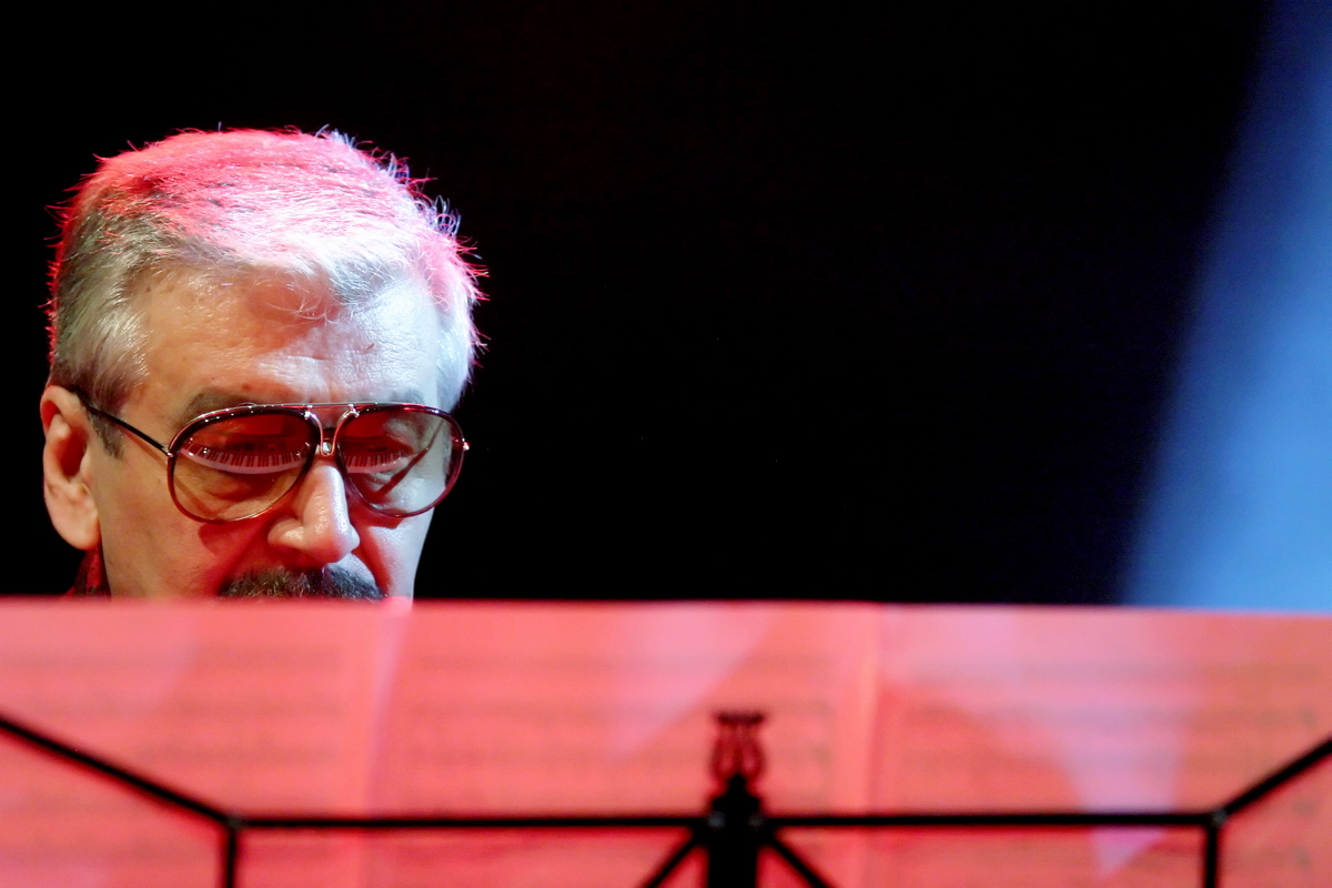 Description: Polish jazzman and Hammond organ virtuoso Wojciech Karolak during a Visegrad Festival concert of the irish folk band Carrantuohill with jazzmen.