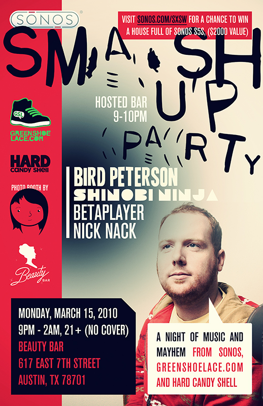 Description: The Smash Up Party is happening again this year, on the Monday night of SXSW Interactive, March 15th, at the Beauty Bar!