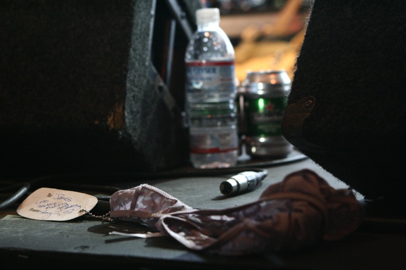Description: ... I see jail bait underpants. Thrown onto the stage after a Jame Blunt set. Tag reads "To: James. Lets practice making your baby. From: Amy."
