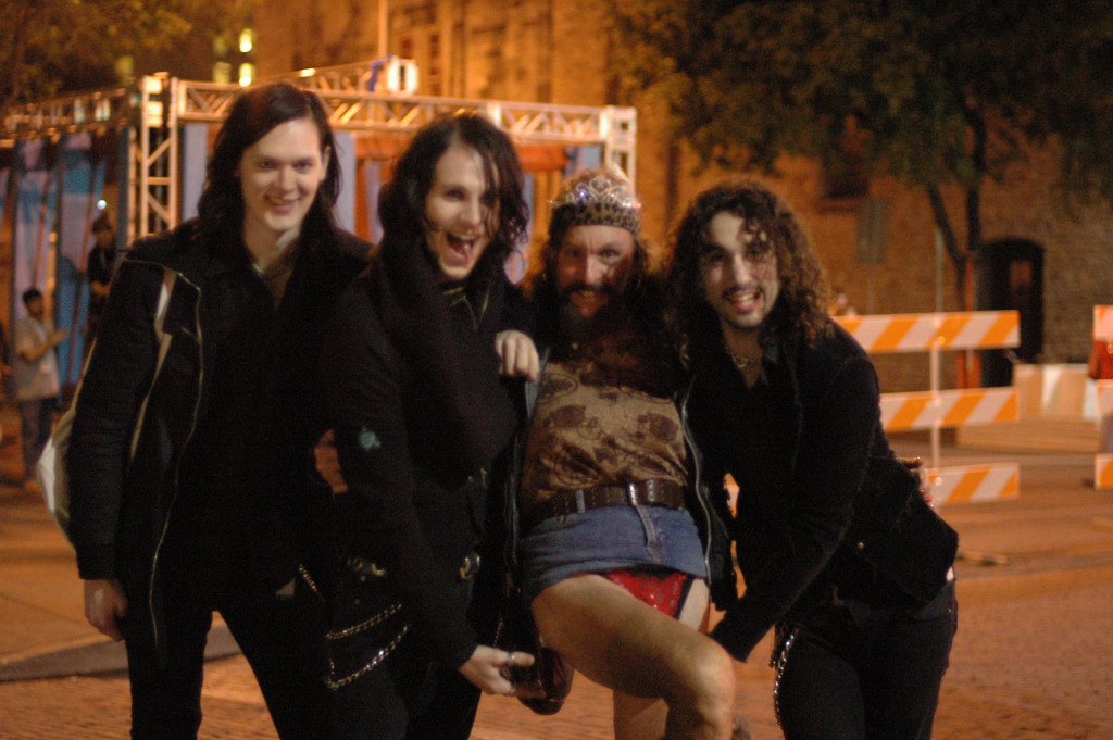 Description: The Zico Chain TV pal around with noted Austin street figure Leslie on 6th Street in Austin, Texas before their SXSW07 gig 3/14/07 - photos by Jeff Barringer - Staff Photographer - Photos shot with Nikon D70 w/50mm f/1.4D AF Nikkor Lense
