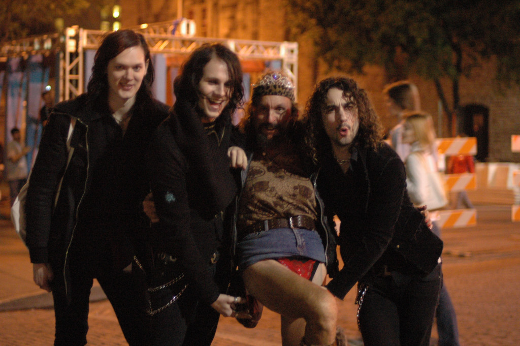 Description: The Zico Chain TV pal around with noted Austin street figure Leslie on 6th Street in Austin, Texas before their SXSW07 gig 3/14/07 - photos by Jeff Barringer - Staff Photographer - Photos shot with Nikon D70 w/50mm f/1.4D AF Nikkor Lense