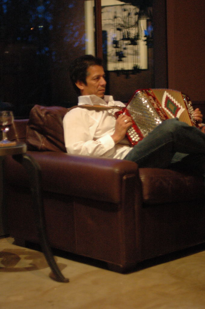 Description: The Flatlanders (Joe Ely, Jimmy Dale Gilmour, Butch Hancock, with accordionist Joel Guzman) at a house concert Austin, Texas on 6/9/07 - photos by Jeff Barringer staff photographer - Photos taken with Nikon D70 and 50mm f/1.4D AF Nikkor