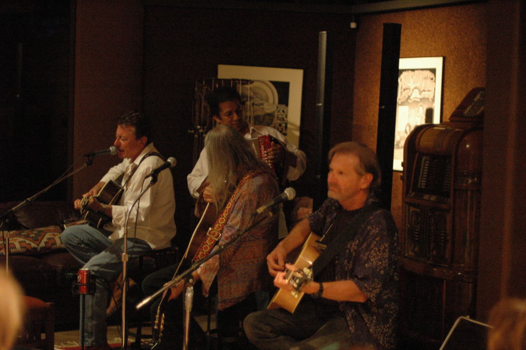 Description: The Flatlanders (Joe Ely, Jimmy Dale Gilmour, Butch Hancock, with accordionist Joel Guzman) at a house concert Austin, Texas on 6/9/07 - photos by Jeff Barringer staff photographer - Photos taken with Nikon D70 and 50mm f/1.4D AF Nikkor