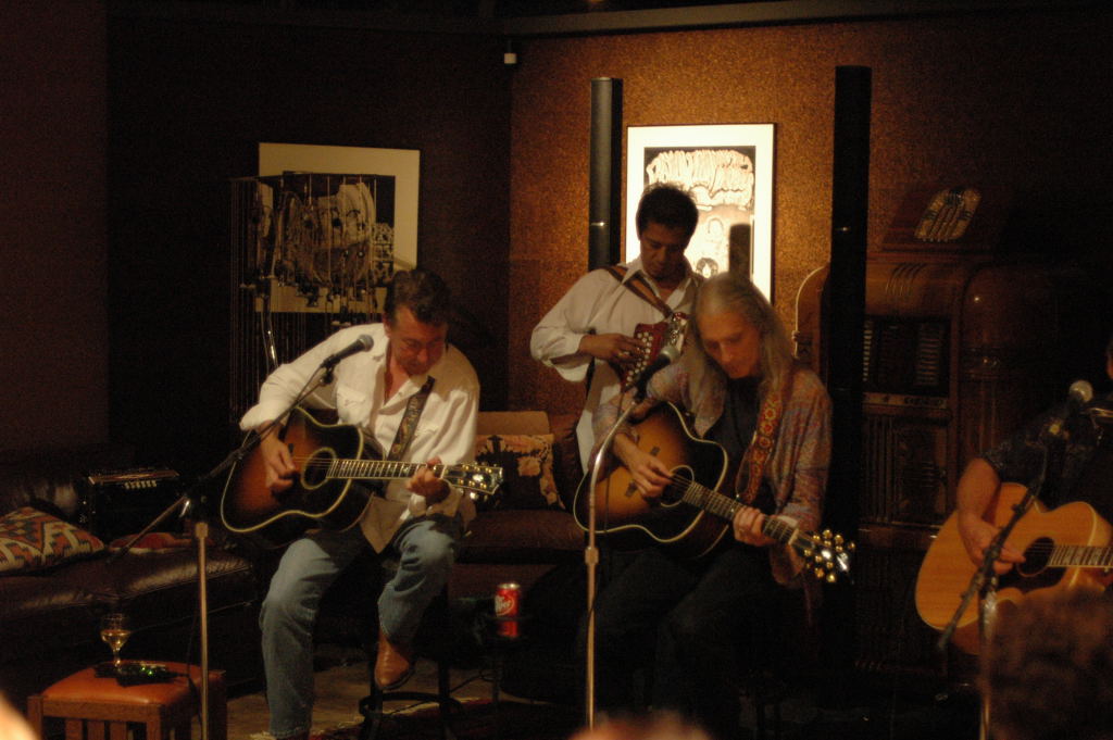 Description: The Flatlanders (Joe Ely, Jimmy Dale Gilmour, Butch Hancock, with accordionist Joel Guzman) at a house concert Austin, Texas on 6/9/07 - photos by Jeff Barringer staff photographer - Photos taken with Nikon D70 and 50mm f/1.4D AF Nikkor