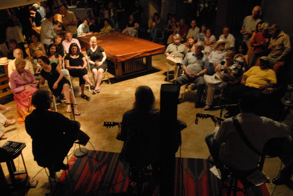 Description: The Flatlanders (Joe Ely, Jimmie Dale Gilmour, Butch Hancock, with accordionist Joel Guzman) at a house concert Austin, Texas on 6/9/07 - photos by Jeff Barringer staff photographer - Photos taken with Nikon D200 and Sigma 20mm f/1.8 EX Aspherical