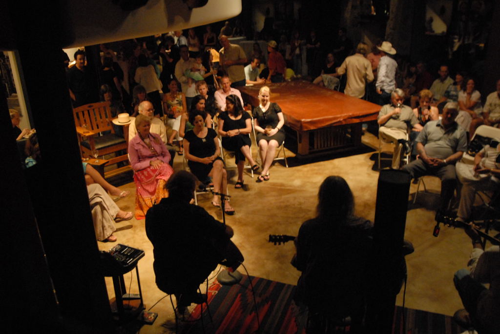Description: The Flatlanders (Joe Ely, Jimmie Dale Gilmour, Butch Hancock, with accordionist Joel Guzman) at a house concert Austin, Texas on 6/9/07 - photos by Jeff Barringer staff photographer - Photos taken with Nikon D200 and Sigma 20mm f/1.8 EX Aspherical
