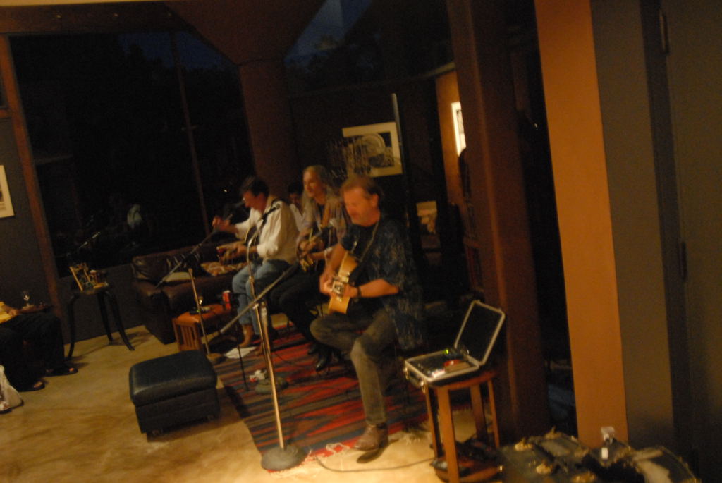 Description: The Flatlanders (Joe Ely, Jimmie Dale Gilmour, Butch Hancock, with accordionist Joel Guzman) at a house concert Austin, Texas on 6/9/07 - photos by Jeff Barringer staff photographer - Photos taken with Nikon D200 and Sigma 20mm f/1.8 EX Aspherical