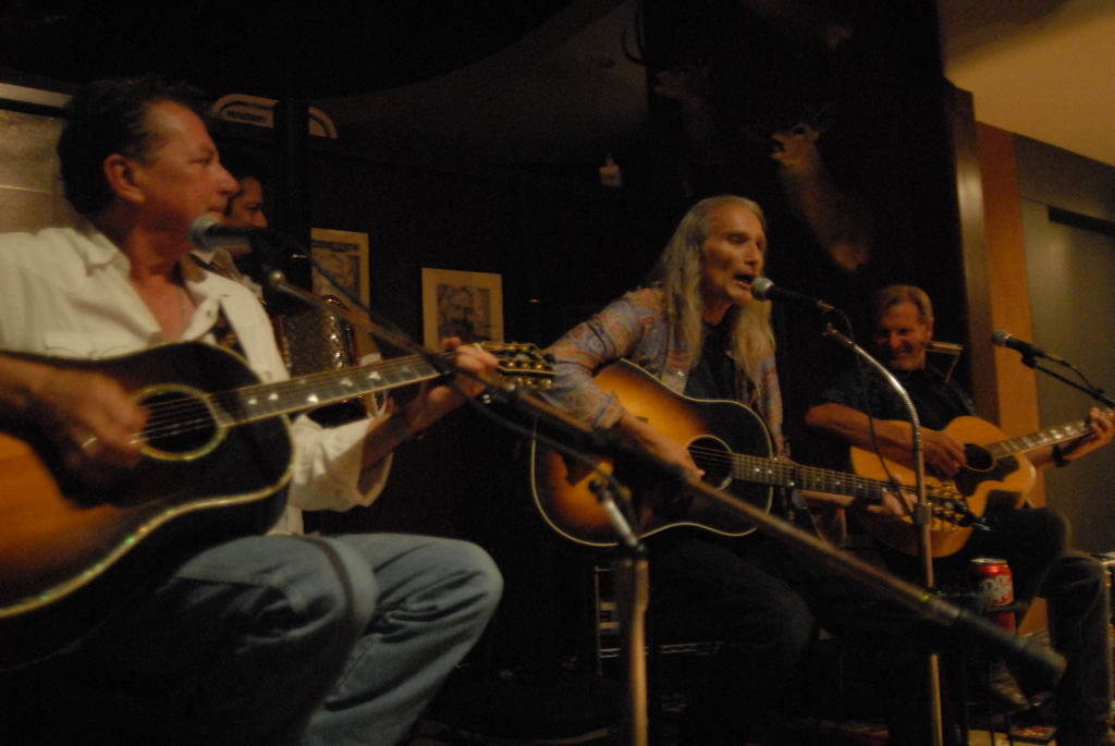 Description: The Flatlanders (Joe Ely, Jimmie Dale Gilmour, Butch Hancock, with accordionist Joel Guzman) at a house concert Austin, Texas on 6/9/07 - photos by Jeff Barringer staff photographer - Photos taken with Nikon D200 and Sigma 20mm f/1.8 EX Aspherical