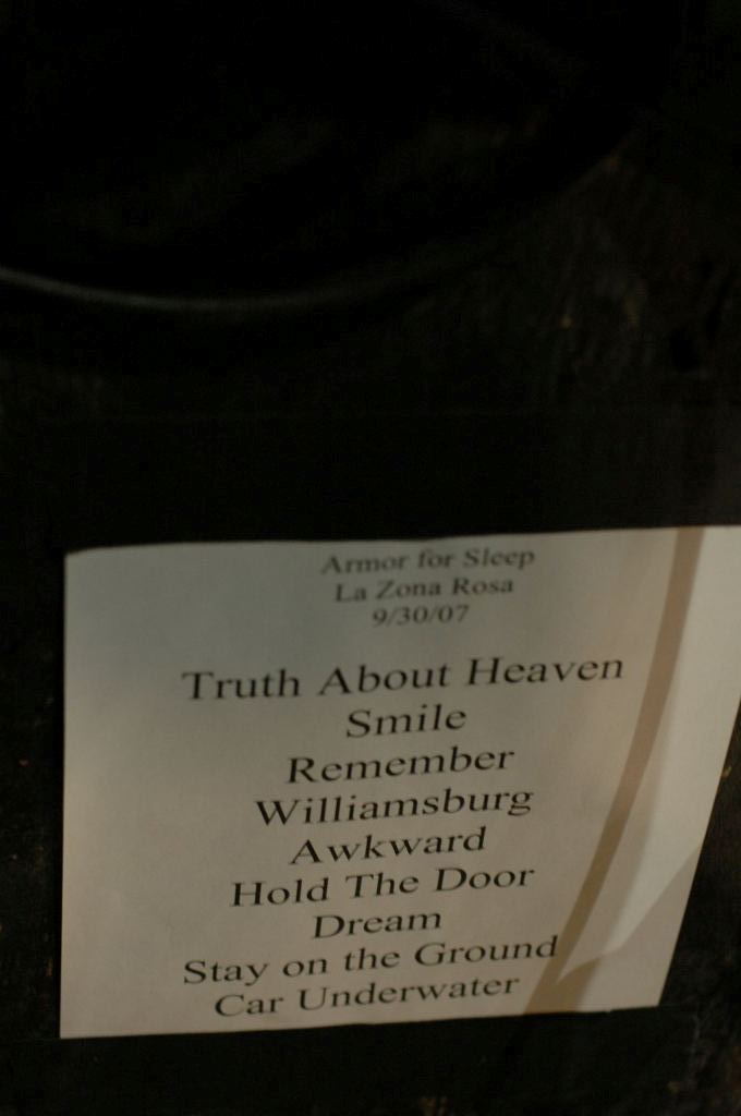 Description: Armor For Sleep at La Zona Rosa in Austin, Texas 09/30/2007 - photos by Jeff Barringer, club kingsnake staff photographer. Photos taken with Nikon D70 w/AF NIKKOR 50mm f/1.4D