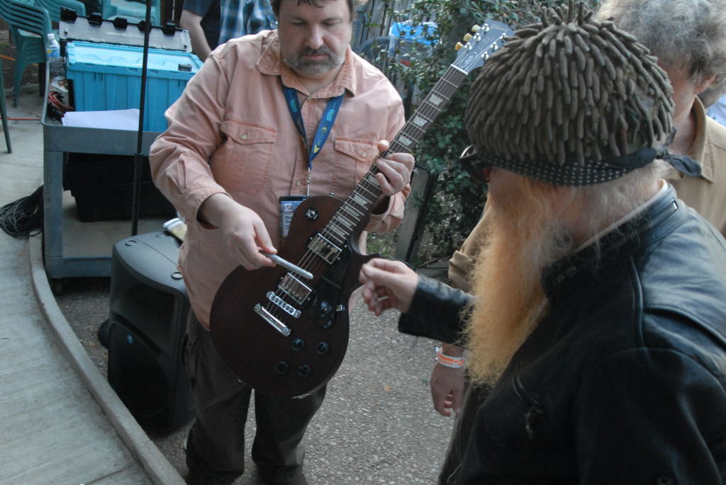 Description: Billy Gibbons of ZZ Top walkon during Roky Erickson & The Explosives set at the Roky Erickson Ice Cream Social Benefit for Health Alliance for Austin Musicians (HAMM) during SXSW 2008 03/13/08. Billy signed 2 Gibson guitars, one to Austin and one for the Gibson showroom in Austin. - photos by Jeff Barringer - Staff Photographer - Photos shot with Nikon D300 and D200 and Nikkor and Sigma Lenses